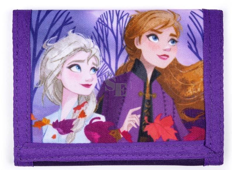 Praktická textilní peněženka na suchý zip. Vzadu je uzavíratelná kapsička na drobné, uvnitř jedna přihrádka na bankovky, šest kapsiček na karty a jedna průhledná kapsa.