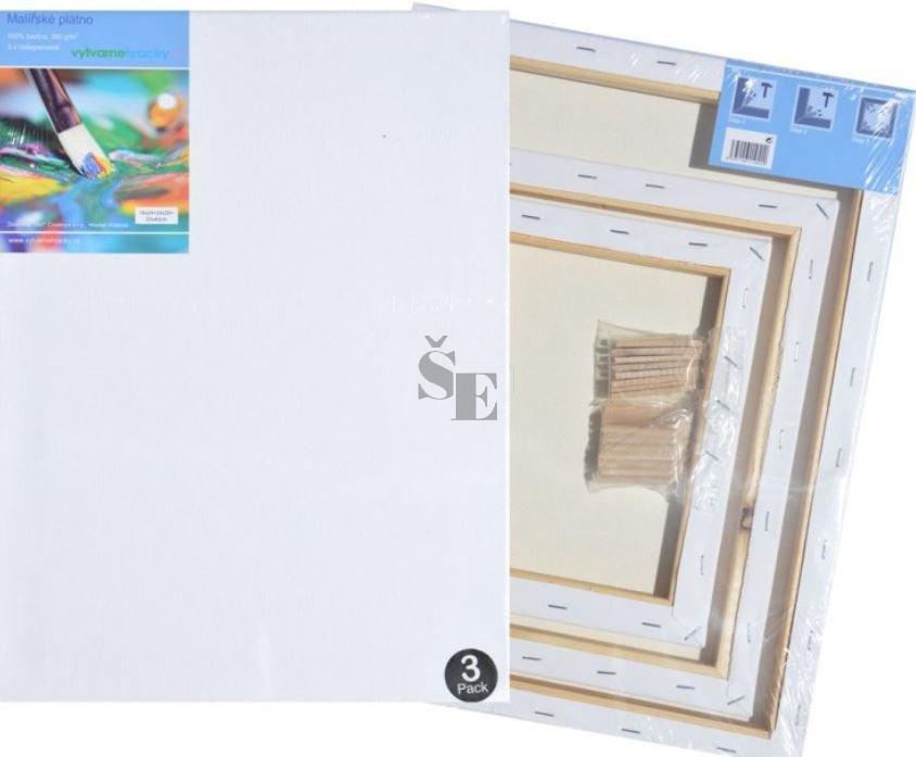 Vysoce kvalitní malířská plátna o rozměru 18x24, 24x30, 30x40 cm s gramáží 380 g/m2, 100% bavlna. Plátno je natažené na rám z borovicového dřeva. Připraveno k okamžitému malování, jak akrylovými, tak olejovými barvami. Součástí balení je 16 dřevěných vypínacích kolíků