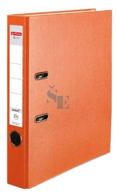 PP, kapsa na hřbetu, vnitřní bílý podlep, lepenka 2 mm, páková mechanika, prstokroužek, radokroužek, kovová lišta, oranžový
