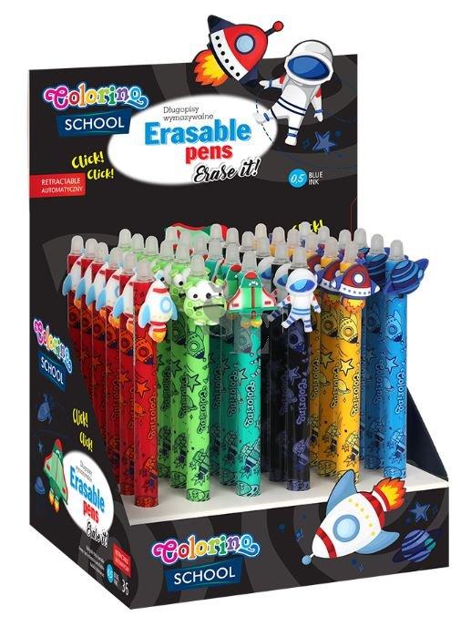 Praktická gumovatelná pera pro děti s vesmírnými motivy. Kvalitní inkoust lze v případě potřeby jednoduše vygumovat a přepsat.