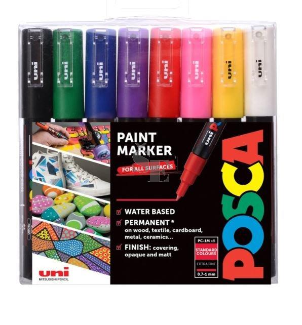Sada popisovačů POSCA ideální pro popis a grafickou práci s detaily. Bezkonkurenční inkoust s vysokou krycí schopností je určen i na tmavé povrchy. Kvalita a sytost barev ohromí jak umělce tak i fandy, kteří budou nadšeni “magickým” efektem POSCA. Nabízí neomezené kreativní možnosti. Barvy jsou vrstvitelné, mísitelné, vodou ředitelné.