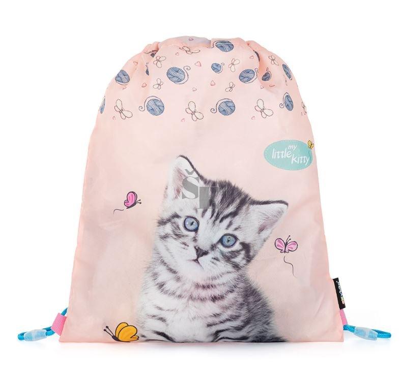 Sáček má šňůrku na stažení, která se dá připevnit ke školnímu batohu, školní tašce či k aktovce.