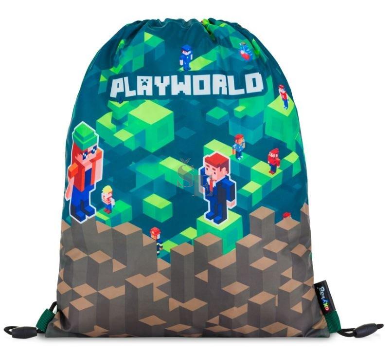 Praktický sáček na cvičky nebo přezůvky do školy. Uzavírá se snadno stažením šňůrek a lze ho nosit na zádech jako batůžek nebo připevnit ke školnímu batohu. Vyroben z lehkého a odolného 100% polyesteru.