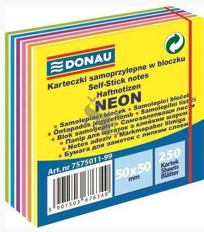 Samolepicí bloček, 50x50 mm, 250 lístků, DONAU, neonové a pastelové barvy