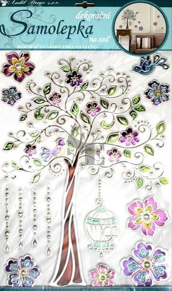 Samolepky na zeď barevný strom ze stříbrnou konturou 49x29cm