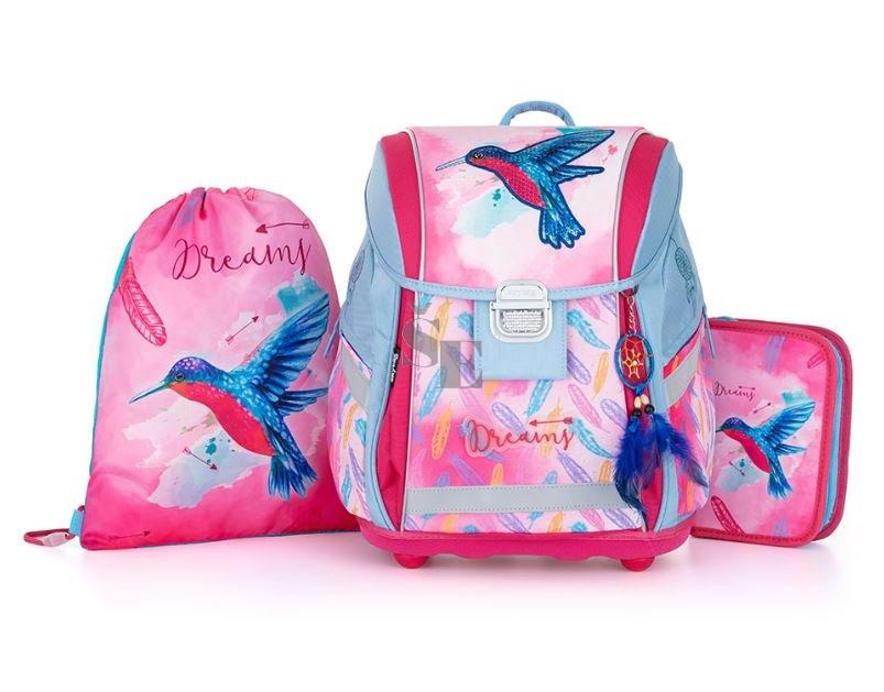 Aktovka se skládá z jedné prostorné komory, kam se pohodlně vejdou všechny školní pomůcky pro děti v 1. a ve 2. třídě. Dno batohu je z pevného materiálu, chrání tím obsah před převržením a vysypáním. Zapínání je na bezpečnostní přezku. Přední kapsička je určena na svačinu, nechybí řada reflexních prvků, díky kterým je aktovka viditelnější.