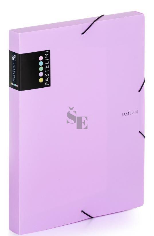 Polypropylenový box na dokumenty formátu A4. Materiál: polotransparentní, pružný a odolný polypropylen (700 μm). Pastelini Dvě gumičky přes rohy bezpečně fixují obsah. Šířka hřbetu: 30 mm. Kapacita: cca. 300 listů. Box je individuálně balen v plastové fólii.