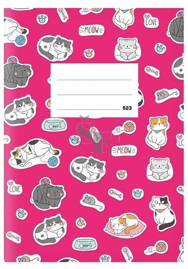 Školní sešit s linkou ve formátu A5, v růžové barvě, s dívčími motivy, v originálních deskách s matným laminem a lokálním UV lakem. Stránky jsou bez okrajů.