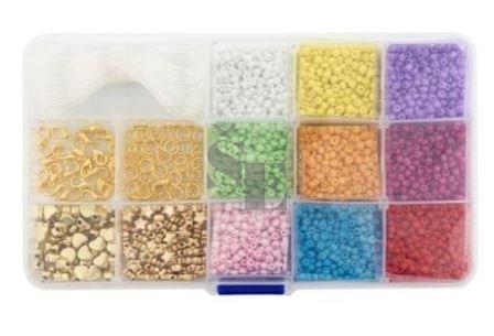 Obsahuje 9 barev korálků, zlaté hvězdičky, zlatá srdíčka, 2 druhy zapínání, šnůrky na navlečení.