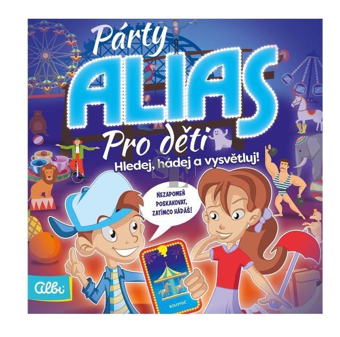Hra Párty Alias Pro děti obsahuje: 1 herní plán, 1 ruské kolo, 200 karet, 6 velkých figurek, pravidla hry.