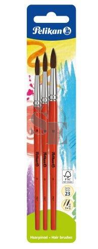 Vlasový štětec Pelikan řady 23, velikost 8,10,12 z jemných koňských žíní, bezešvé hliníkové úchyty, dřevěná rukojeť, lesní certifikace FSC, na blistru