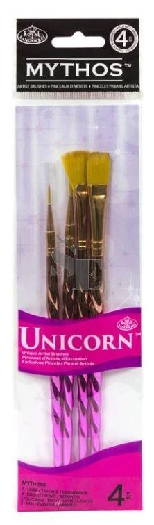 Tato sada obsahuje 4 štětce s rukojetí, má kovovou povrchovou úpravu a víří roh jednorožce.