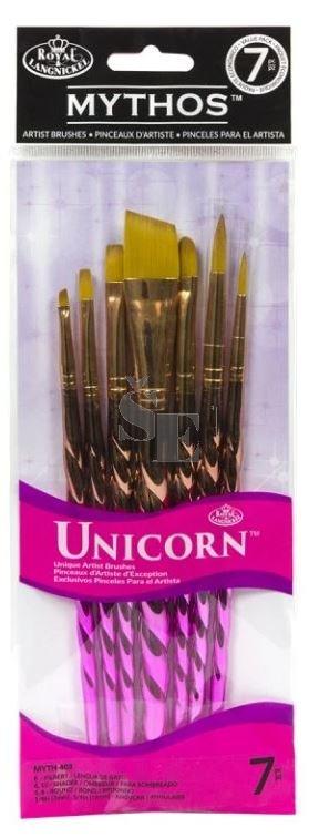 Tato sada obsahuje 7 štětců s rukojetí, má kovovou povrchovou úpravu a víří roh jednorožce.