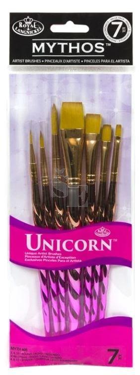 Tato sada obsahuje 7 štětců s rukojetí, má kovovou povrchovou úpravu a víří roh jednorožce.