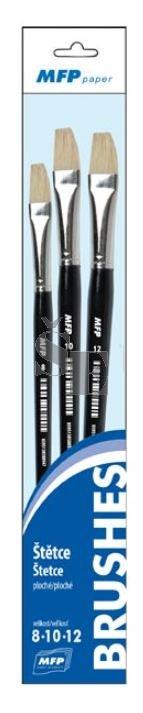 Školní štětec plochý, materiál vlasu - štětiny prasete, souprava 3sk - tři velikosti 8, 10, 12
