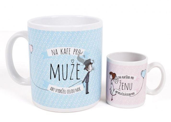 Hrnky patří mezi jedny z nejvíce oblíbené dárky ke každé příležitosti. Tato dvojice vtipně pojatých hrnků je speciálně navržena pro čerstvé novomanžele. Pro ženicha mega hrnek, aby dlouho vydržel a pro nevěstu mini hrneček.