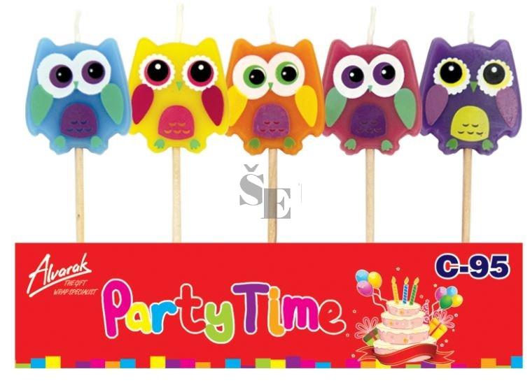 Sada obsahuje 5ks narozeninových svíček ve tvaru sovy. Tyto svíčky s moderním a trendy designem nesmí chybět jako dekorace na žádném narozeninovém dortu
