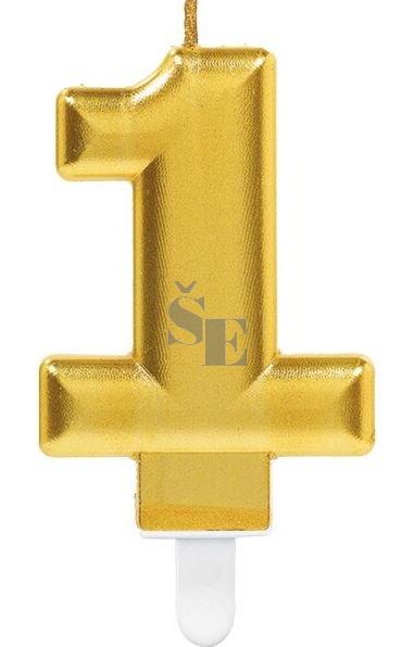Svíčky na dort v podobě číslic ve zlaté barvě.