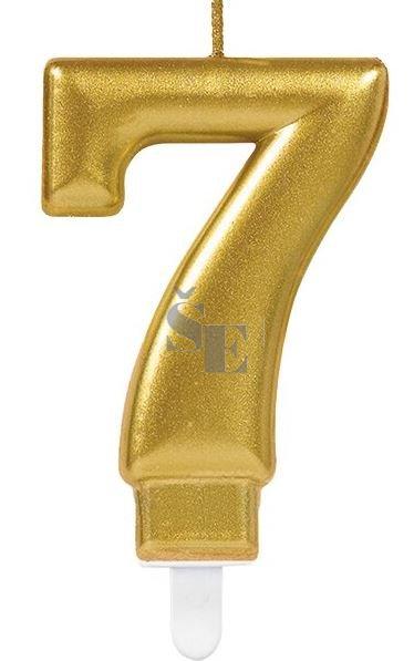 Svíčky na dort v podobě číslic ve zlaté barvě.