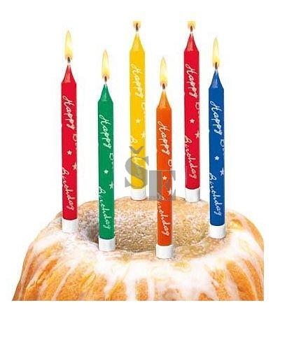 SusyCard Dortové svíčky Happy Birthday 10 ks se stojánky mix