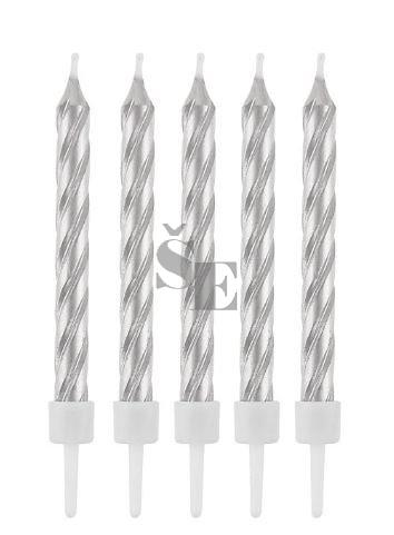 Metalické, stříbrné dortové svíčky o velikosti 8cm