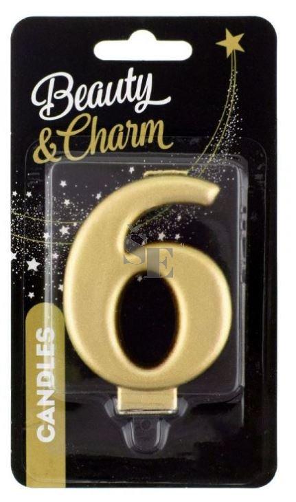 Paper Design Svíčka na dort číslice 6 zlatá metalická 8cm 450806