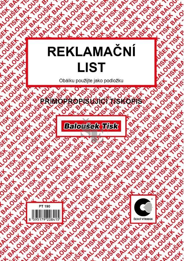 Baloušek Tisk Reklamační list A5 samopropisovací 50 listů PT100
