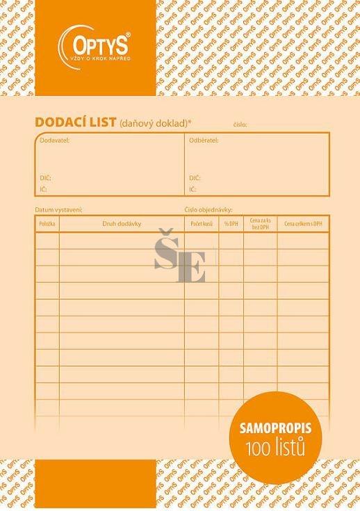 Dodací list - daňový doklad Tiskopis, tiskopisy