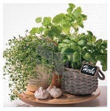 Vůně čerstvé bazalky, tymiánu a máty přenesená na ubrousek. Tento motiv navodí příjemnou atmosféru domácí kuchyně a venkovské pohody. Je ideální pro rodinné stolování, grilování s přáteli i letní pikniky, kde dokonale zapadne do prostředí plného čerstvých chutí a vůní.