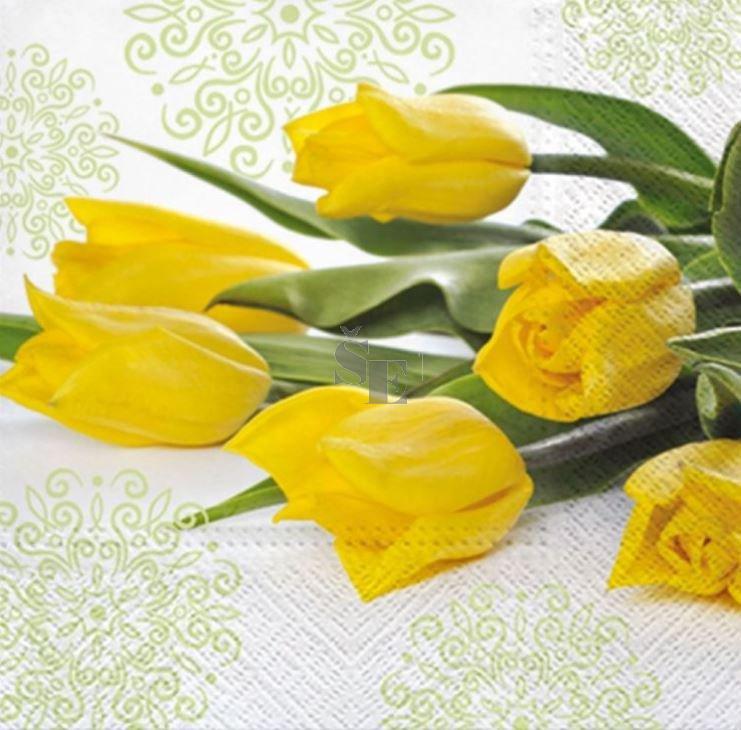 Třívrstvé kvalitní ubrousky - Žluté tulipány.