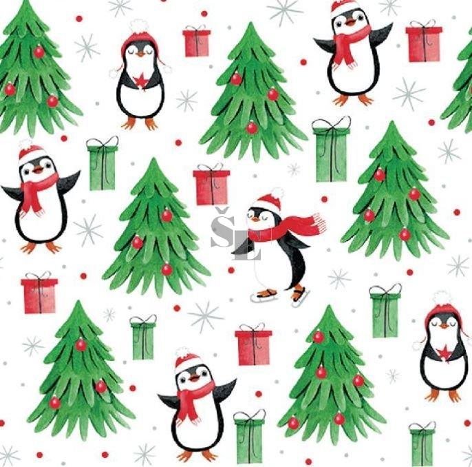 Třívrstvé kvalitní ubrousky s vánočním motivem - Vánoční tučňáci.