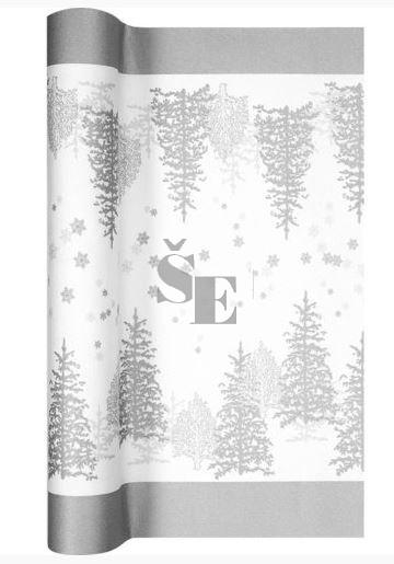 Alvarak Dekorační papírový ubrusový 500x40cm č. 0200-1020 Stříbrné stromečky
