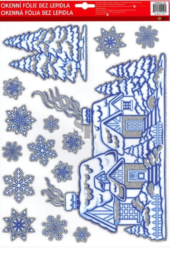 Fólie ledová andíci, chaloupka, zvonky a vločky 42x30cm