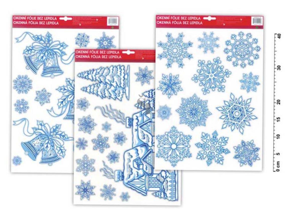 Okenní fólie bez lepidla ledové vločky se stříbrnými glitry 42 x 30 cm