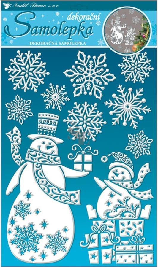 Samolepící sněhulák s vločkami bílý s nafouklým efektem a jemnými glitry 41x29cm
