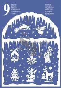 Vhodná pomůcka k vytváření okenních dekorací vánočním sněhem ve spreji (číslo zboží 101),9 různých zimních a vánočních motivů v každé sadě. Rozměry šablon:31x21cm.