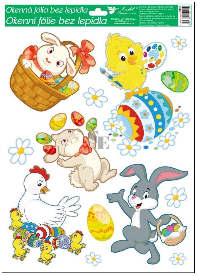 Okenní fólie bez lepidla s velikonočními kuřátky.