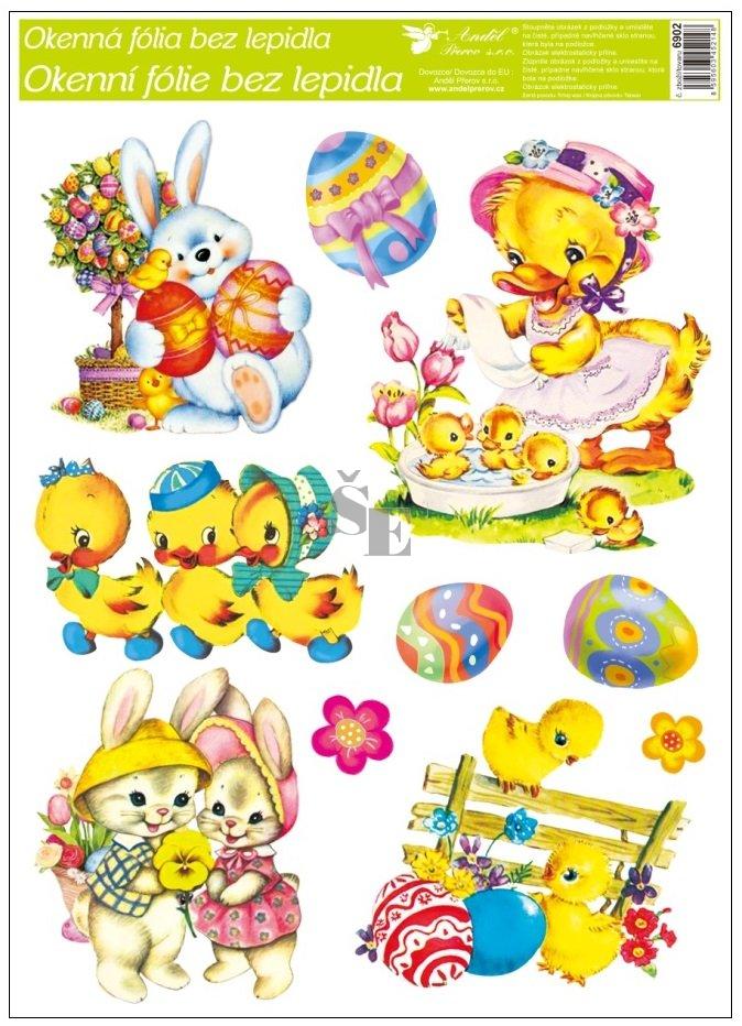 Okenní fólie bez lepidla s velikonočními kuřátky.