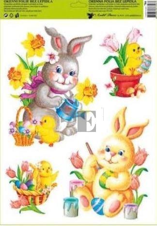 Okenní fólie bez lepidla s motivy zajíci, kačenky, kuřata