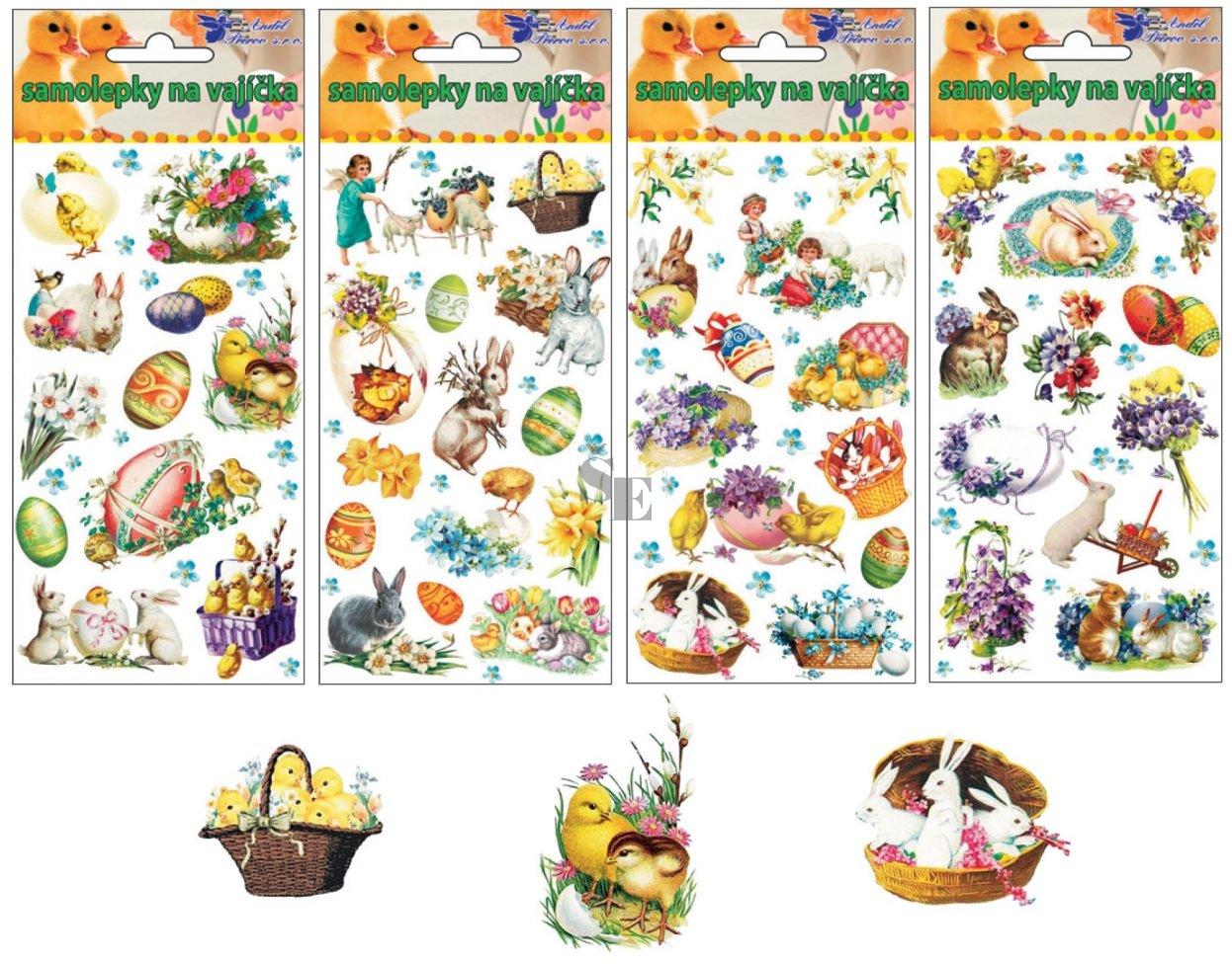 Etikety velikonoční, samolepky na vajíčka, smršťovací folie