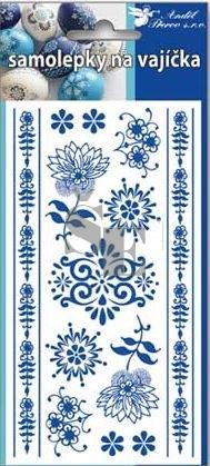 Samolepky na velikonoční vajíčka v modrobílé barvě.