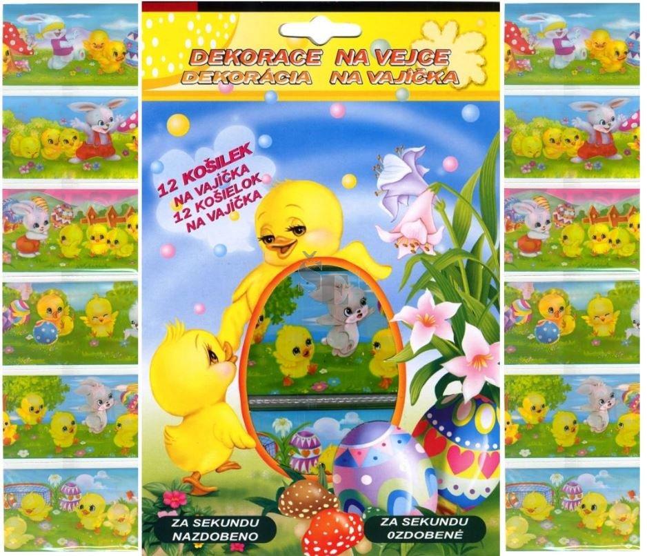 Smršťovací dekorační fólie na vajíčka 12 ks. Na vařené vajíčko navlékněte fólii, položte na lžíci a ponořte na 3 sek.do vroucí vody. Fólie se okamžitě obepne kolem vejce.