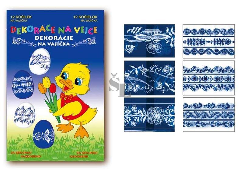 Smršťovací dekorační fólie na vajíčka-modrotisk. Návod : Na vařené vajíčko navlékněte fólii, položte na lžíci a ponořte na 3 sek.do vroucí vody. Fólie se okamžitě obepne kolem vejce. V balení 12 ks košilek.