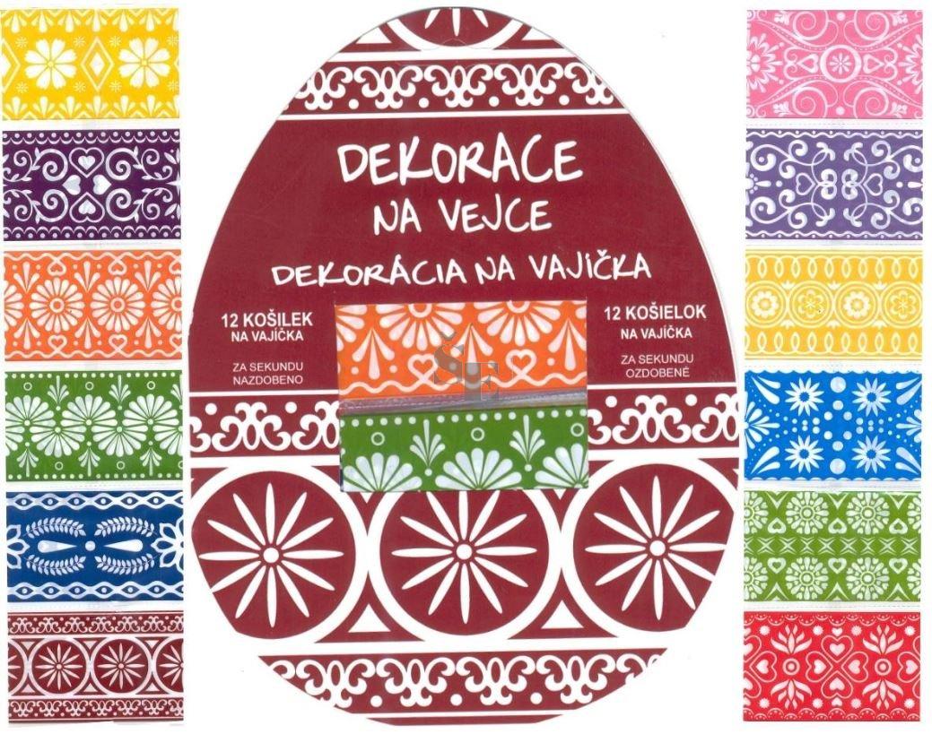 Smršťovací dekorační fólie na vajíčka 12 ks. Na vařené vajíčko navlékněte fólii, položte na lžíci a ponořte na 3 sek.do vroucí vody. Fólie se okamžitě obepne kolem vejce.