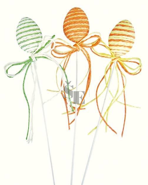 Zápich provázkové vajíčko 4 cm s mašlí, výška 29 cm, 3 barvy.