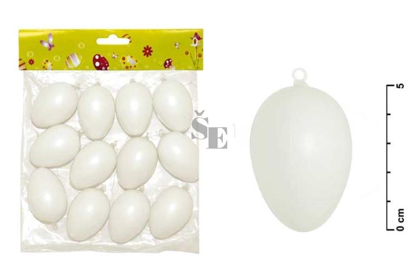 Plastová vajíčka 6 cm bílá, 12 ks v sáčku